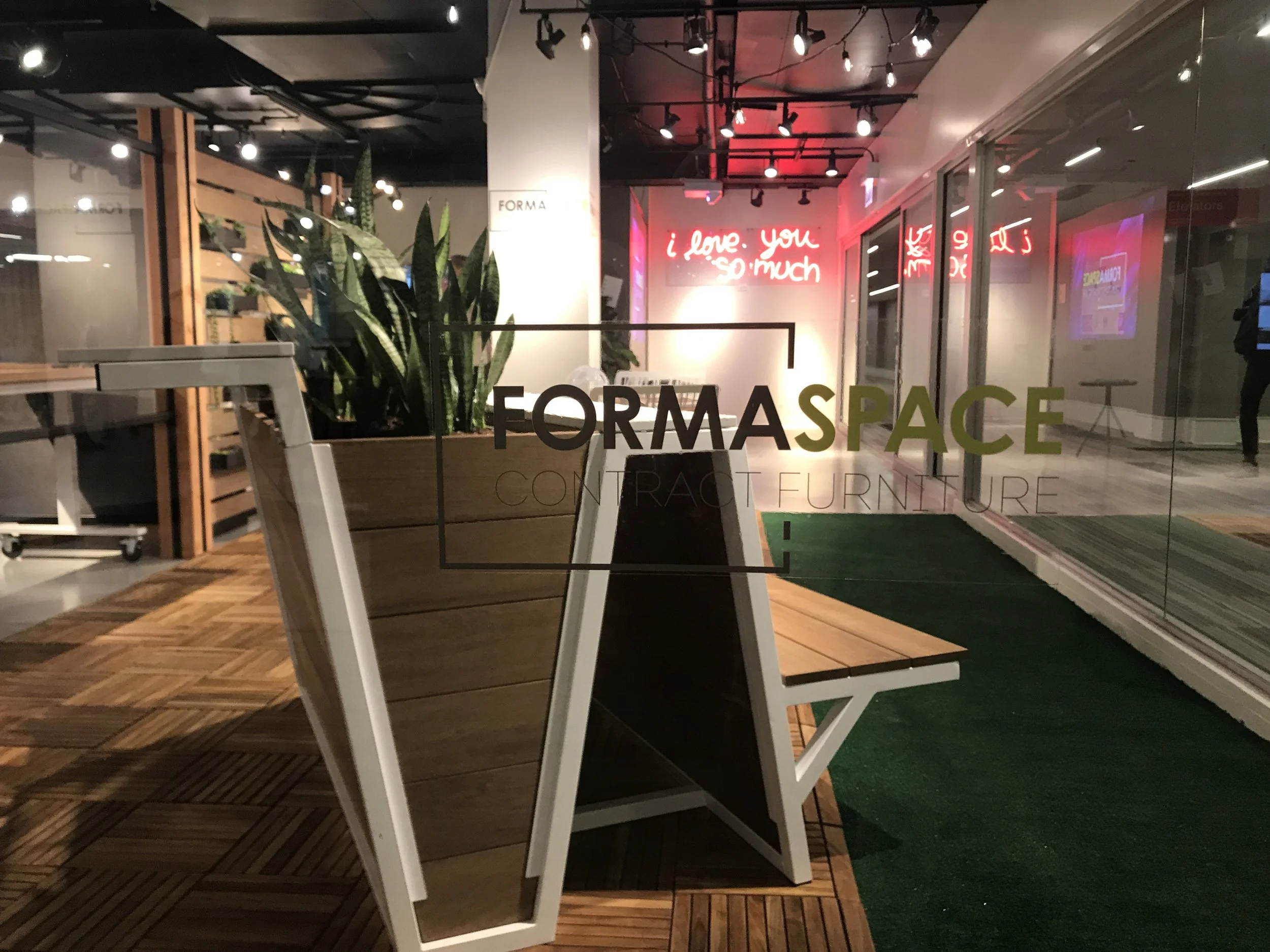Other Formaspace furniture applications on display will include a custom conference table and credenza, the multipurpose, multi-environment Diversiform space divider that provides privacy and space division with a multitude of finish and material options, as well as the Zig Zag, a multipurpose piece designed as bench seating, a planter, and a standing height worksurface – an all-in-one design that is suitable for both seated and standing work either indoors or outdoors.