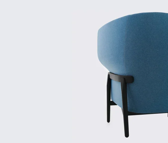Havn enables open lounge settings, or focused work with its high back. A highly sculptural back that nestles in the craft-oriented frame somewhat "pinches" it together to make the upper form. The back is wrapped organically within the wooden frame, surrounding a soft bolster pillow for comfort. The curved wooden frame cradles the upholstered seat with a carefully crafted void in the rear that makes it visually stunning.