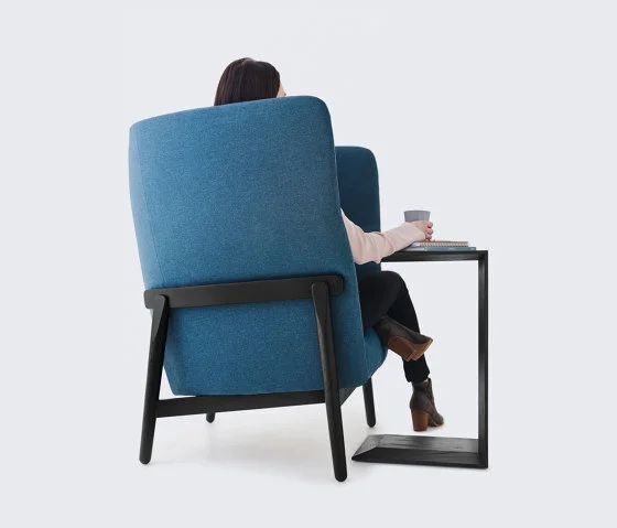 Havn is a Scandinavian-inspired seating collection comprising a winged lounge chair and settee. In Danish, "Havn" means harbor, suggesting that this lounge chair is a good place to "dock" during the day with a coffee or a book. It's a retreat from the norms of everyday work.