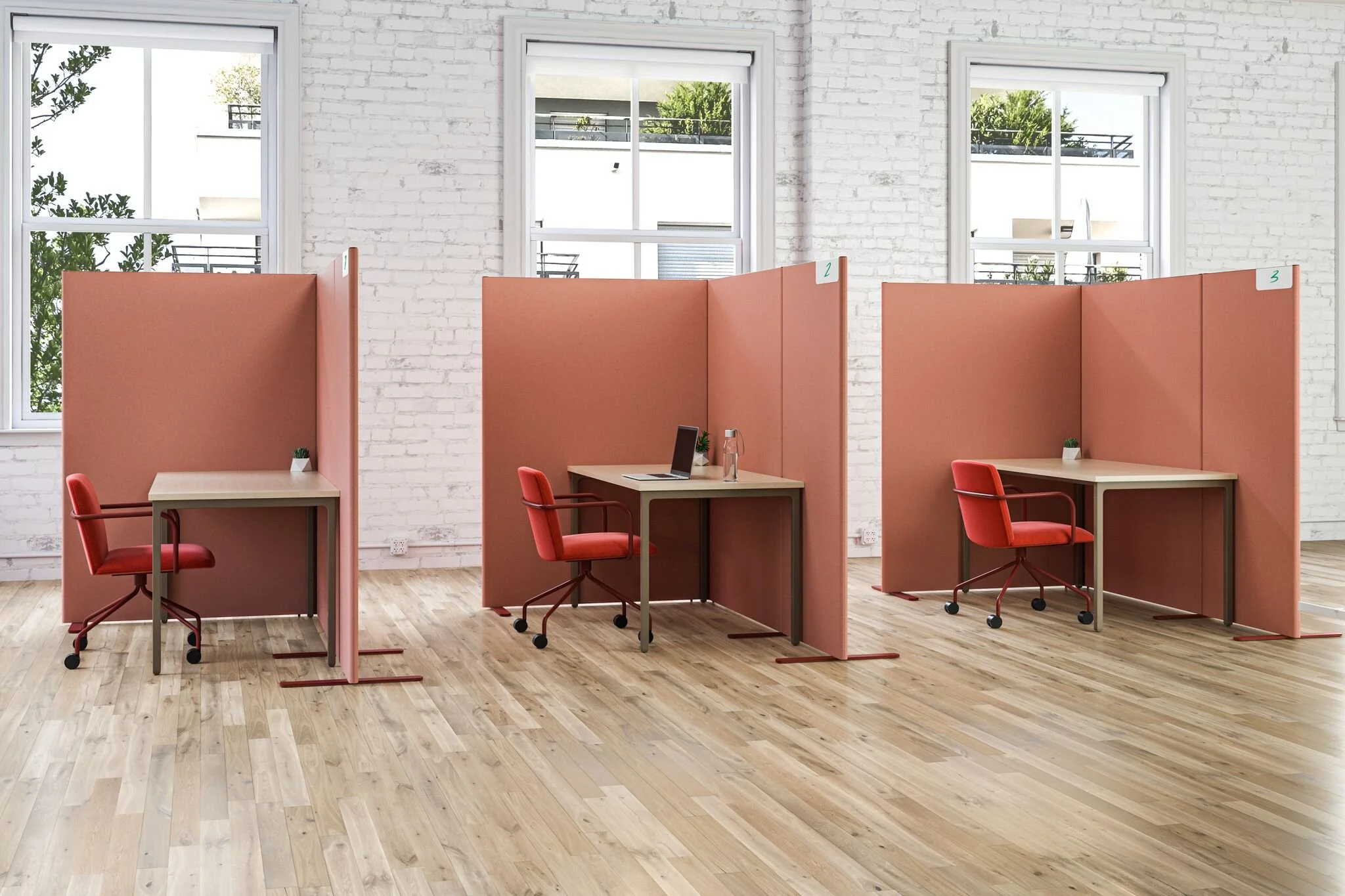 Instantly reconfigurable without the use of special tools, Quick upholstered screens live up to their name. These lightweight spatial dividers support any foreseeable situation, be it retrofitting an office for density, creating an ad-hoc lounge, or temporarily enforcing greater social distance. The screens can stand alone or be grouped together, with optional casters making them even easier to move or nest when not in use. A top connecting screw allows grouped panels to very simply create any size corner angle, increasing the range of applications, geometries, and design possibilities. Quick serves the ever-changing needs of the contract, healthcare, hospitality, retail, and educational markets and safeguards employees’ physical and mental well-being as they return to their places of work.