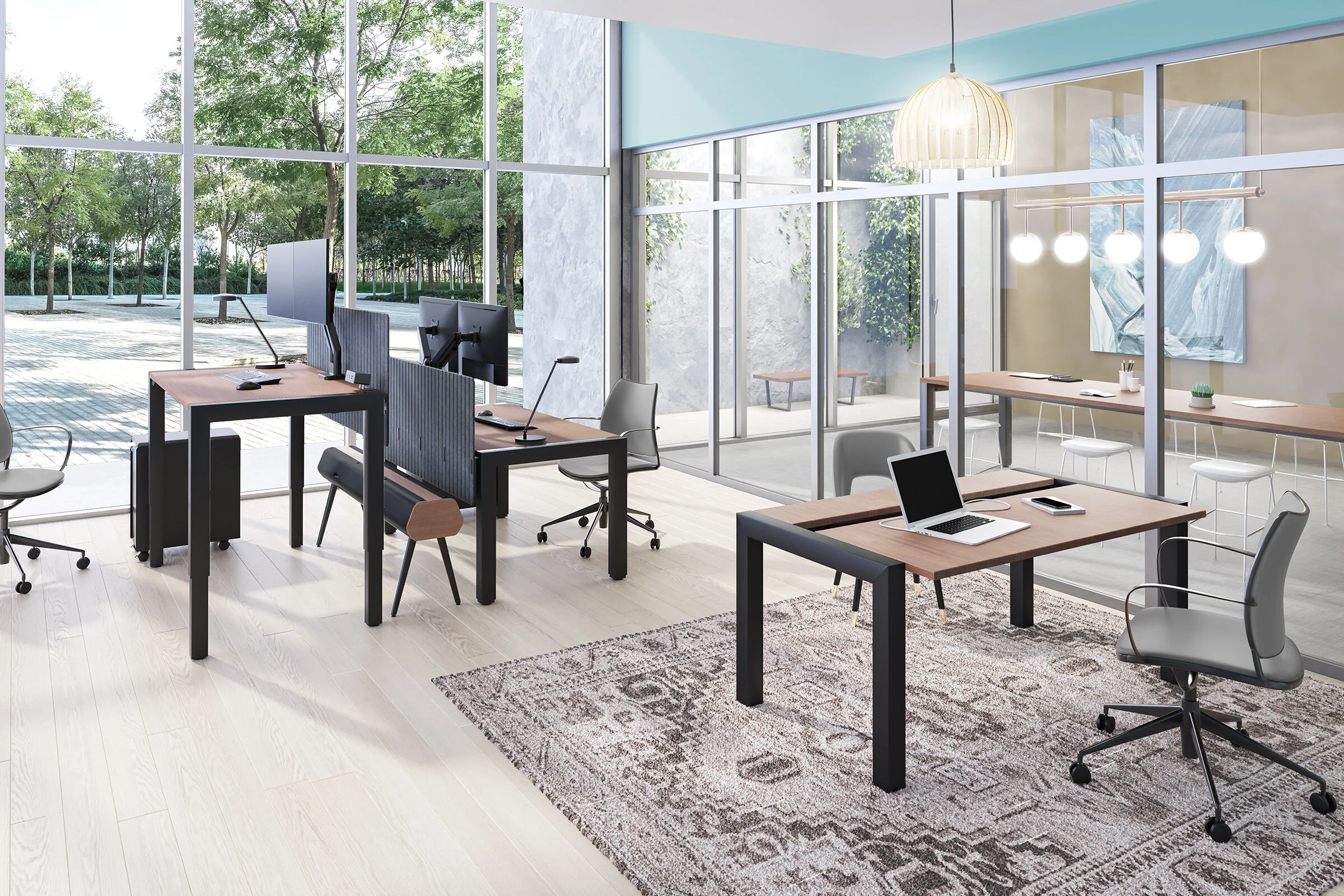 Rounding out the collection are two static tables – available in either a fixed-height sitting (29 inches tall) or a fixed-height standing option (43 inches tall). Both tables include two surface top options – 60 inches by 30 inches or 72 inches by 30 inches – for increased workplace flexibility.