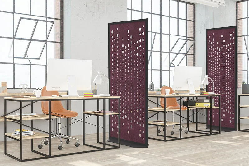 The Define Standing Partition is a sturdy, lightweight, free-standing divider. It features a sophisticated slim aluminum frame that supports the Acusti·fi panel. The Define Standing Partition can be easily moved to accommodate for changing spatial dynamics.