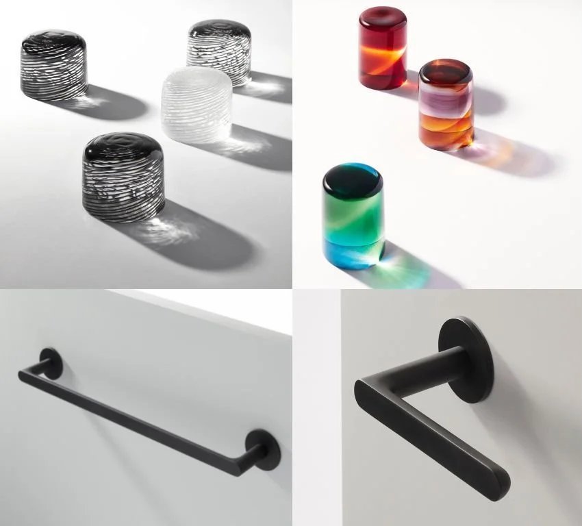 New to the Venezia collection, two families of products, the filigree and two-tone handles, designed by Matteo Thun and Antonio Rodriguez in collaboration with Venini, utilize distinctive techniques of ancient Murano glass making to create these striking pieces.