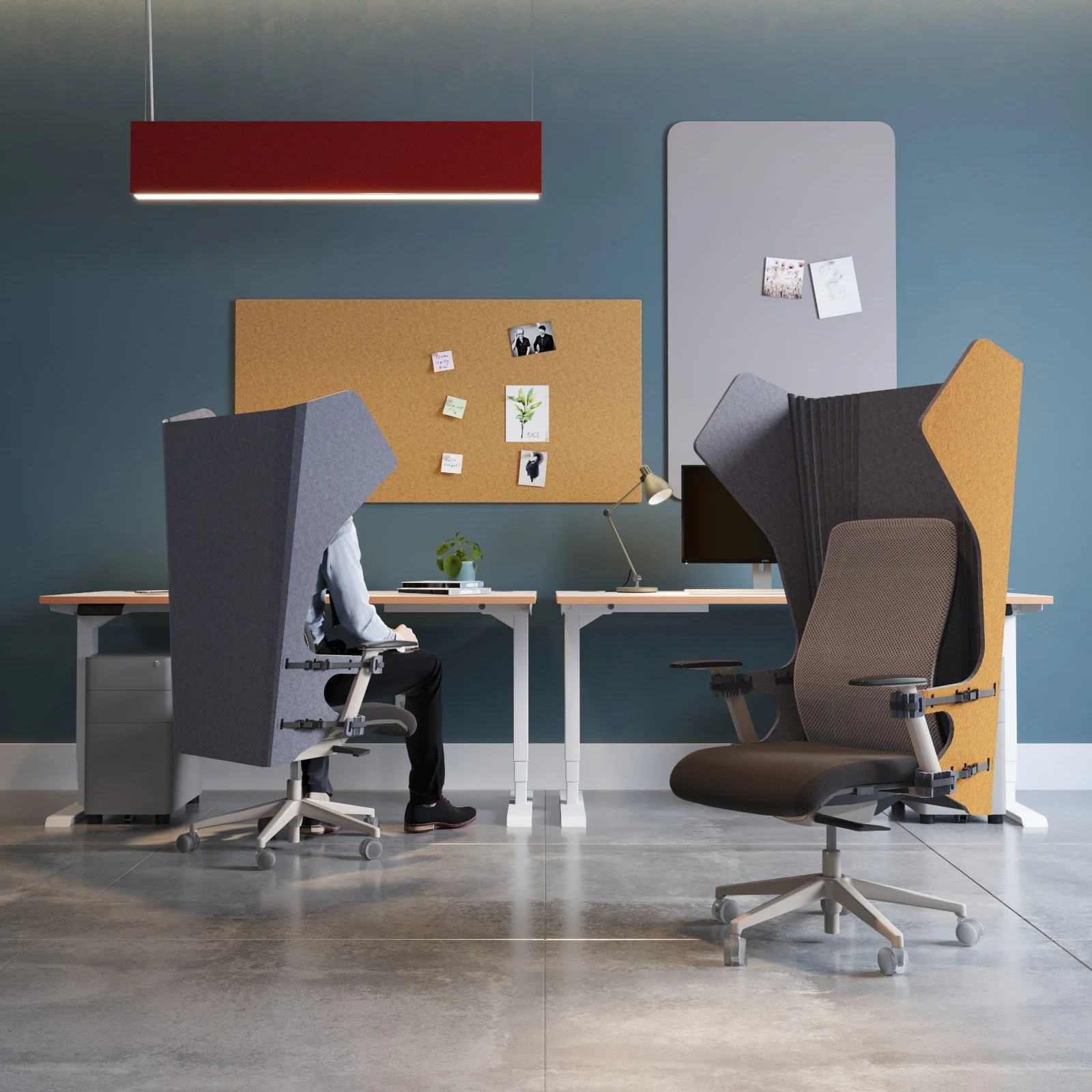 Pre-assembled and ready to go out of the box, PrivaSeat can be easily affixed to most commercial and residential task chairs. Its proprietary, patent-pending design sports flexible wings that obstruct the peripheral line of sight between the worker and what is going on in their surroundings. With an eye-catching and malleable design, PrivaSeat comes in a variety of colors and is sustainably made from EzoBord material, which has proven acoustical properties.