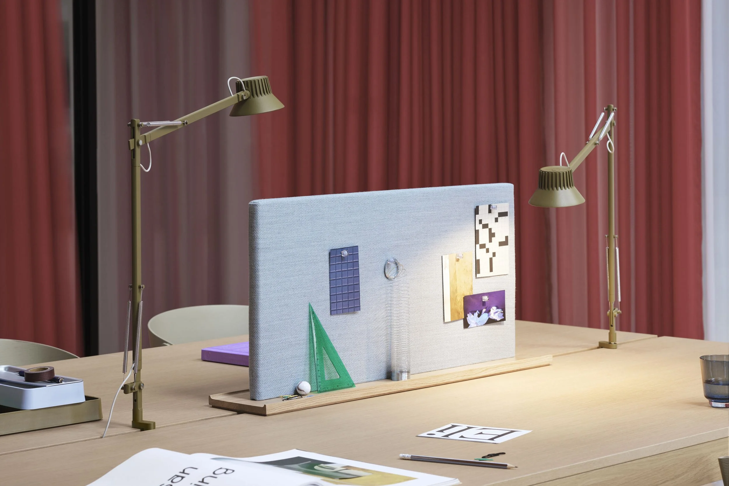 The Dedicate Lamp by Thomas Bentzen for Muuto is a versatile lighting system that can stand, clamp, mount, and pin itself onto various surfaces. Inspired by the classic architect's lamp and industrial cranes, the design offers three models with four different bases. The lamp's spring-armed aluminum body and machined steel base allow for adjustable lighting angles, making it suitable for use as a desk lamp, swing arm sconce, or secondary light source. The option to wall-mount the lamp provides even more flexibility. The Muuto Dedicate is available in Black or Brown Green, in three sizes, with prices ranging from $445 to $549.