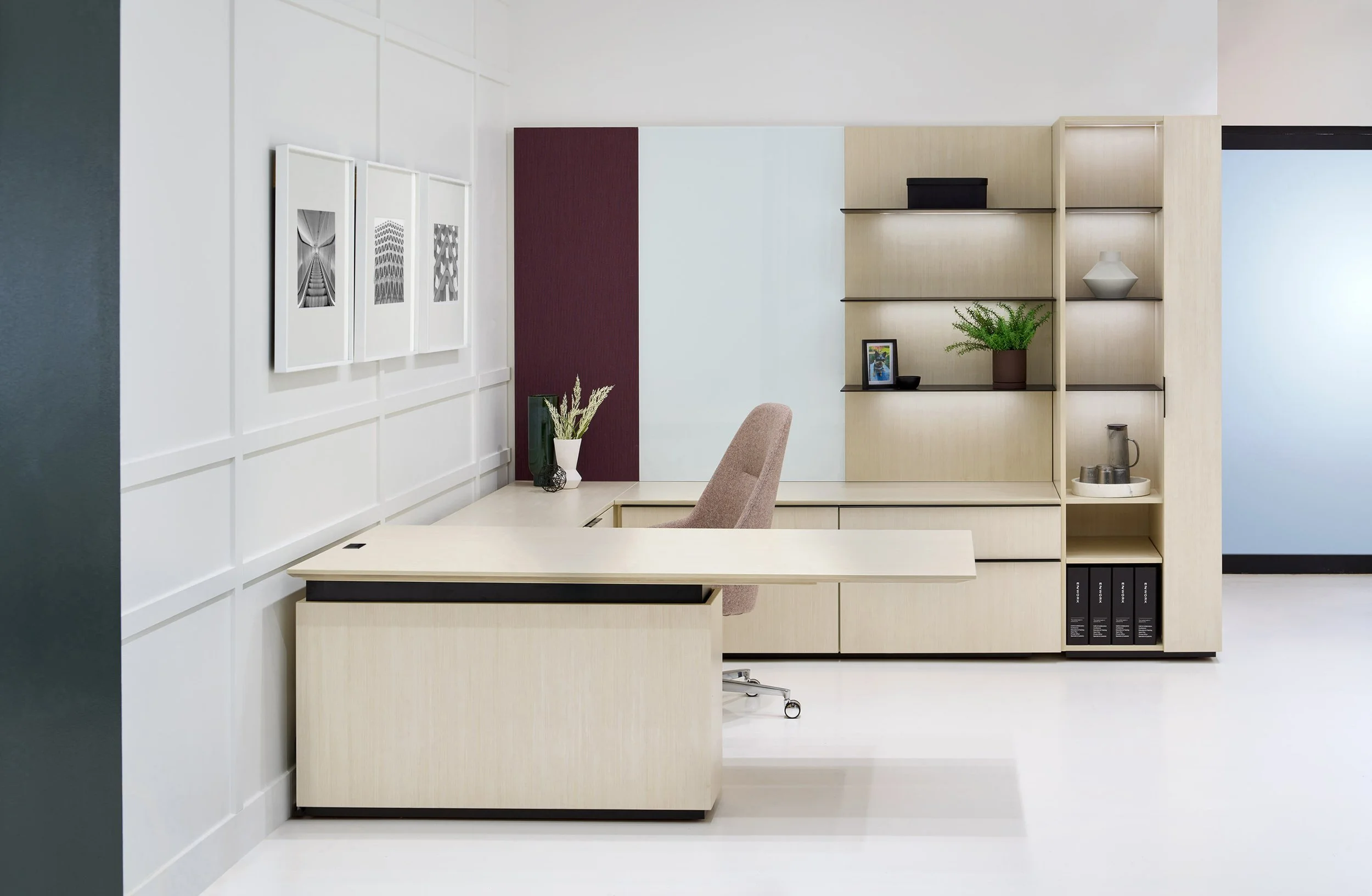 Building on the momentum of its 2024 debut, Affinity introduces new solutions that offer greater flexibility in private office planning. A sculptural O-leg base creates a sophisticated addition to Affinity’s clean architectural forms, while a newly added reception station extends the collection’s aesthetic to entryways and lobbies. Visitors are invited to explore three immersive vignettes that showcase how Affinity’s adaptable design brings real function and value to executive and multi-purpose environments.