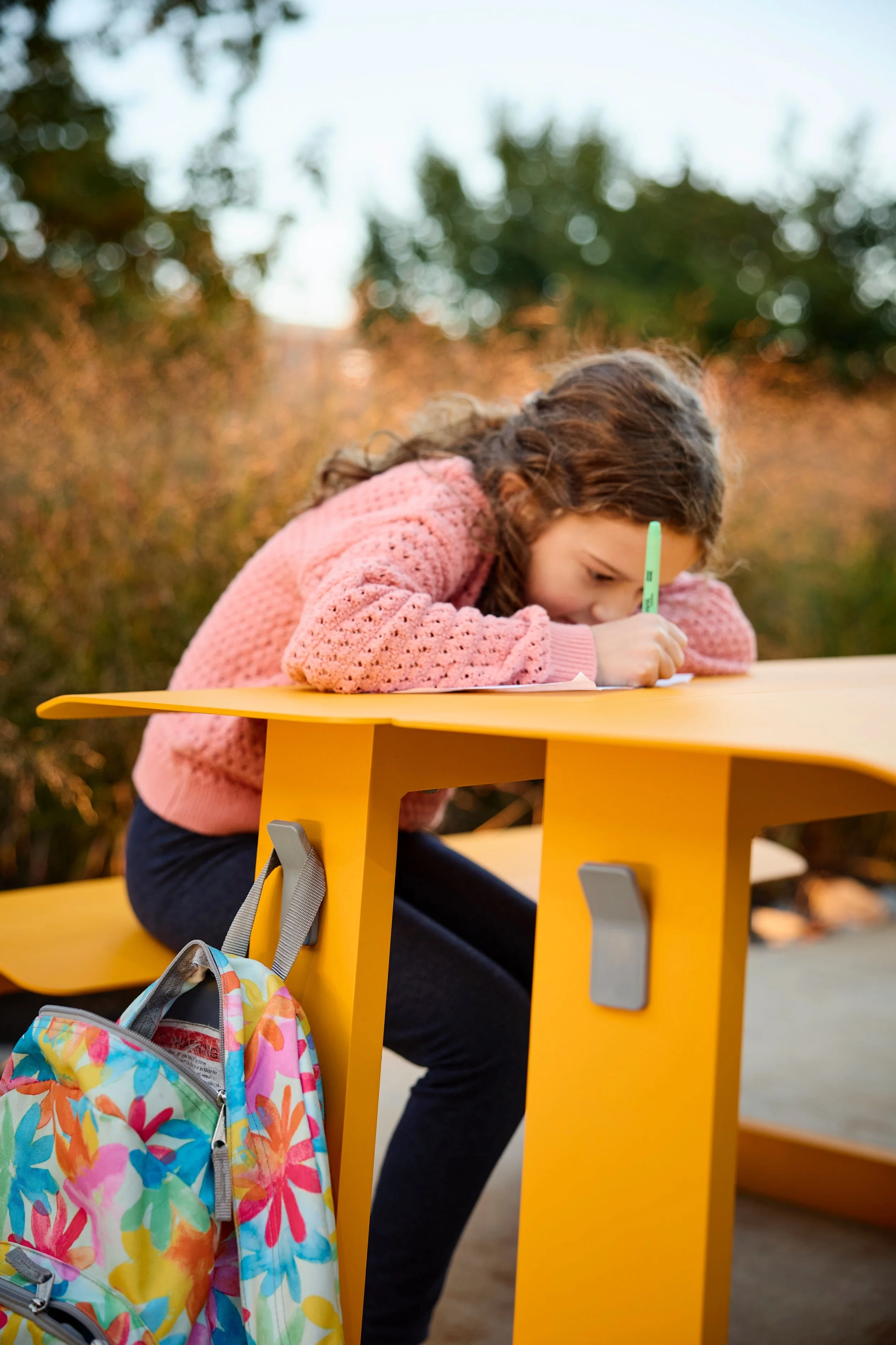 “Take-Out has always been about making it easy for people to come together outside—to pick it up, move it around and create a space that fits the moment,” says Ryan Heiser, Director of Design at Landscape Forms. “These new pieces build on that spirit and open up even more ways to connect. The wedge brings people into more natural, conversational postures while introducing even more interesting geometric possibilities in configuration. And the mini is a special milestone for us. It’s the first piece we’ve designed specifically for K-5 learning environments, and it reflects how much we value schools and the role outdoor spaces play in learning and community. We’re excited to help create those welcoming outdoor environments where kids can gather, explore and grow.”